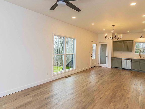 Front porchBlack roofOpen floor planWhite sidingNew kitchen stainless appliancesLuxury vinyl plank floorsCustom cabinets