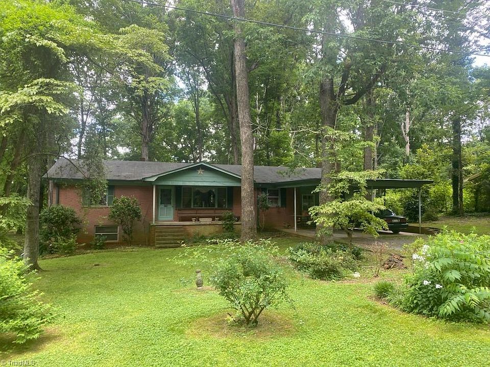 Spacious brick home in Teachey school district! Home offers huge den with rock fireplace, living room and formal dining room. Kitchen has eat-at bar. Primary bedroom has an adjoining bath with shower. Two additional nice sized bedrooms & full bath. Roof 2011. Unfinished basement has heat vent, wall air unit, a nice sized room previously used as a beauty shop & half bath. Covered front porch, deck, nice yard, double carport & 2 driveways. Home being sold as-is.