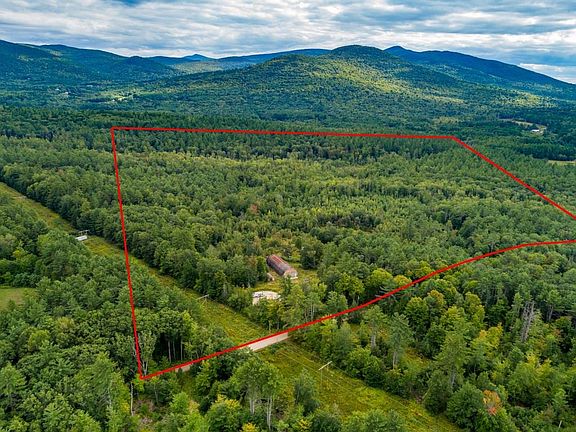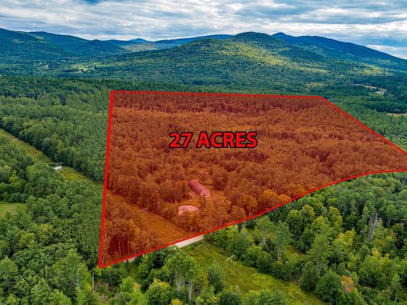 Tamworth, NH. Gorgeous Mountain Views from this unique 27 Acre Parcel of Land. Multiple uses possible with No zoning in Tamworth. Currently Agricultural, Rural, Residential and was used as a home business. The structure is an oversized garage w/two 12’ doors, w/wood stove, 400 Amp electrical service to power a large business, second story has a 1,064 sq ft apartment/one bedroom, bathroom, open concept w/Kitchen leading to a 12’x24’ deck to take in the Mountain Views. Would make a great storage facility, auto repair etc. An unknown Dug Well as well as an Unknown Septic System exists on the 27 +/- acres all installed and built around 2002 according to tax records. Now vacated by previous owners. Being sold as is and with so much potential. Included on the property is a Large Geo Dome slab base that was installed at one time for a future home! Bring your sweat equity and your imagination if your dream is to live close to nature, away from the hustle and bustle of everyday life, yet only minutes to civilization, shopping, hiking and skiing. Close to Ossipee, a great summer vacation spot for many visitors. Looking toward the Mountains, from this land, is a protected nature preserve area, preserving the views too!