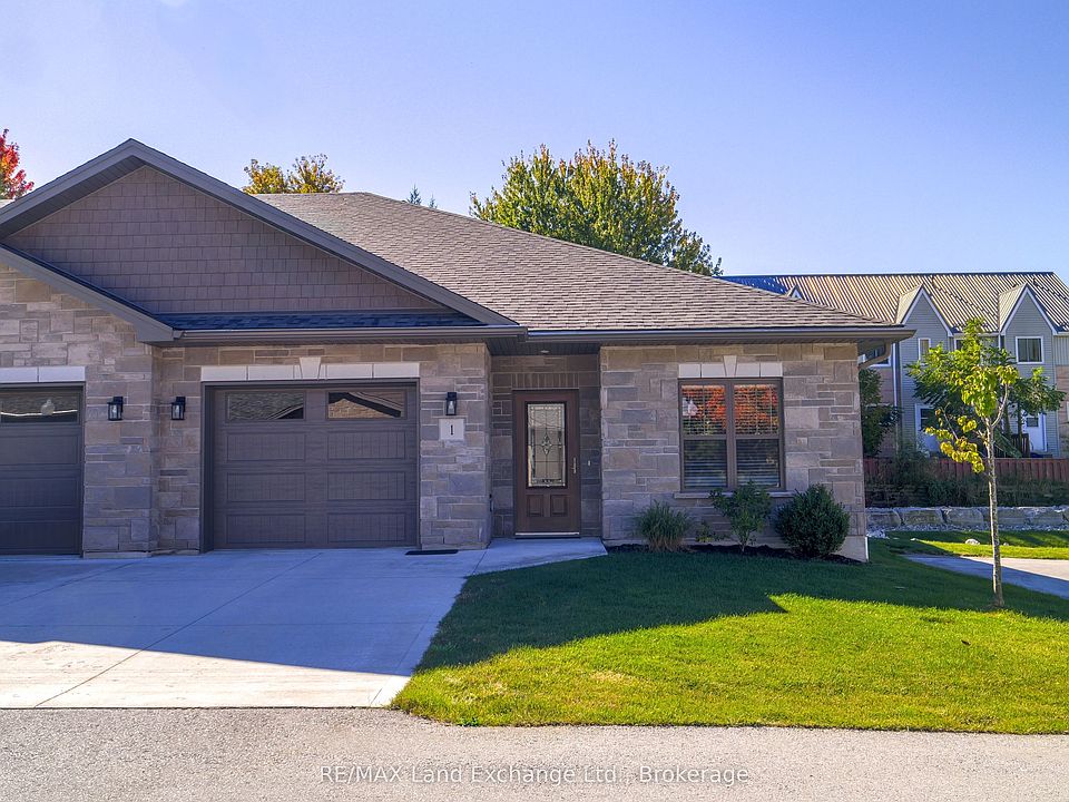 Welcome to Windermere Estates, where comfort, style, and convenience come together. This 4 year old end-unit bungalow townhome offers a relaxed lifestyle close to downtown Kincardine, steps from parks and walking trails, and just minutes to the lake. With 1,280 sq ft of thoughtfully designed living space, its ideal for retirees, downsizers, or anyone seeking easy, maintenance-free living. Built with quality and care, the home features a Shouldice stone exterior and in-floor gas radiant heat for cozy winters, while a heat pump keeps things cool in the summer. Natural gas hookup for BBQ make daily living simple and efficient. Inside, you' ll love the open-concept design, 9' ceilings, and a shiplap feature electric fireplace that adds warmth and charm. The living area open through patio doors to a 10 x 30 concrete patio with privacy fencing a perfect spot for morning coffee or evening gatherings. The primary bedroom includes a private ensuite with a tub/shower combo and a large room for side-by-side laundry, while the second bedroom and main bath with walk-in shower make hosting guests easy. A bonus craft room or office off the garage provides extra versatility, and the garage utility sink is a handy touch for any project. Enjoy peace of mind knowing the condo fee covers lawn care, snow removal, sprinklers, garbage, recycling, street lighting, and road maintenance. Just move in and enjoy! Centrally located near schools, the recreation centre, churches, and everything downtown Kincardine has to offer, this property truly combines modern comfort with small-town charm. Discover carefree condo living at its best and book your showing today!