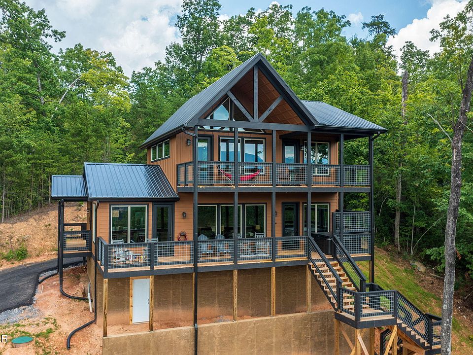 THAT VIEW!!! EXCEPTIONAL DIRECT MT. LECONTE VIEW!!! Modern-style chalet BUILT NEW IN 2024 WITH AN UNBEATABLE LOCATION & STUNNING VIEWS!!! This incredible property is a premier short-term rental opportunity. A beautiful and spacious 2-bedroom, 2-bath cabin in Gatlinburg, perfect for investors seeking the ideal getaway. The cabin boasts breathtaking, unobstructed views from every room and is impeccably maintained. Big windows throughout the cabin, incredible for scenery and natural lighting. The main floor showcases a gorgeous kitchen with an island, leathered granite countertops, a dining area with panoramic mountain views, a spacious living room with a modern fireplace, a luxurious king-sized bedroom, and a custom-tiled shower. Step onto the large, covered deck to relax in the hot tub while soaking in the scenery. Upstairs features another king-sized bedroom and bath, a generous game room/family area, and a second covered deck. Revel in uninterrupted views of the Great Smoky Mountains. Witness stunning sunrises and sunsets from either deck. This high-quality cabin is built with a solid poured foundation walls, hardy board siding, and a sleek black metal roof. Don't miss this rare opportunity—invest now!