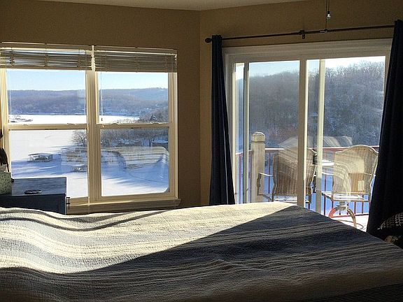 ****Under contract **** We believe we have one of the best views at the lake. Located on the quiet Niangua with great fishing but also close to restaurants. The master bedroom has an en suite with a double sink vanity and the other bathroom has two doors - one to the living area and a pocket door to the spare bedroom which is nice for guests to have their privacy. There is an electric fireplace and two sliding glass doors to the large balcony - one from the living room and another from the master bedroom. Since we are on the top floor (only one and a half floors above ground level), we have beautiful vaulted ceilings throughout all of the rooms. It is being sold furnished with a 12x32 slip. The HOAs include cable, internet, maintenance of the two pools (one heated), snow removal, three dog parks, and a nice pavilion/play area. The complex offers get together’s and live music often during the summer at the pavilion. We have purchased a home, but it won’t be ready for us to move in until the end of July. Ideally we would like to remain in the condo and rent until that time. E-mail albarker115@gmail.com for more information.
