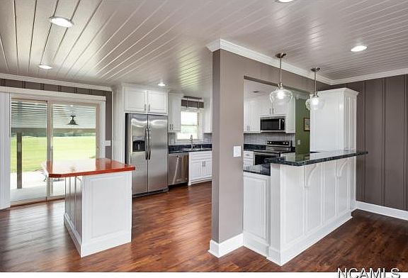 LIKE NEW HOME IN THIS FULLY REMODELED 3BED 2BA HOME SITTING ON LEVEL 5 ACRES. OPEN FLOOR PLAN WITH HARDWOOD & TILE. MOST EVERYTHING NEW IN 2016 INCLUDING: CUSTOM CABINETS, APPLIANCES, PLUMBING, WIRING, HVAC, WINDOWS, ROOF, OVER SIZED LAUNDRY RM, IN HOUSE SAFE ROOM. NEW GARAGE ALSO ADDED WITH PLUMBING CAN FIT MULTIPLE LARGE VEHICLES & WORKSHOP AREA WITH PULL THROUGH BACK DOOR. COVERED BACK PATIO OFF KITCHEN LOOKS OVER CLEARED PASTURE AND POND. LARGE FREE STANDING 40X40 POLE BARN, CIRCLE DRIVE. GENERATOR HOOK UP. BEAUTIFULLY LANDSCAPED.