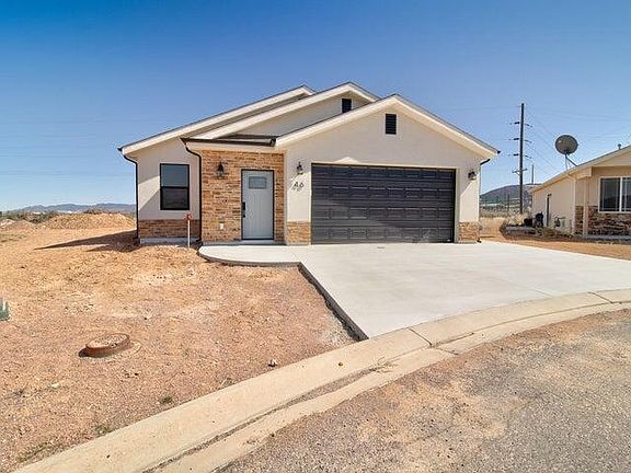 New, custom-built, move in ready. No HOA. This cozy home was built with the upgrades and finishes that you deserve. Built in 2024 w/ 1,491sqft, 3 beds, 2 bath, 2 car garage, on 0.15 acre. Large master suite with walk-in closet. Flooring includes engineered hardwood, plush carpet with upgraded 8lb. padding, and tiled bathrooms. Kitchen includes a 7 foot island with the fireclay farmhouse sink w/ quartz countertops throughout and soft close cupboards and drawers. The living room has the most beautiful tray ceiling w/ plenty of natural light from the oversized windows. Extra engineered bonus storage space above the garage (6x20). Located in a quiet cul de sac neighborhood in Enterprise, UT. Only a 40 minute commute to St. George or Cedar City.