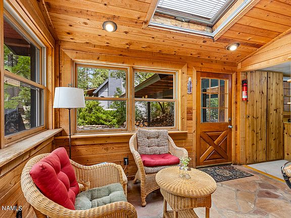 Welcome to this charming and unique cabin, where rustic elegance meets modern comfort. Nestled on an oversized lot surrounded by lush greenery and mature trees. This property offers a peaceful, private oasis. Inside, you will find knotty pine cabinetry and walls throughout. Cherry wood floors add to the charm and warmth of the home. The kitchen is a standout with its distinctive Tulikivi soapstone fireplace, creating a focal point of warmth and cozy gatherings. The living room centers around a stunning stone fireplace. Attention to detail is evident the exquisite carpentry and built-ins that give the home character. On the main level, you will find two comfortable bedrooms and a full bathroom. The cherry wood shower is reminiscent of a sauna. Upstairs, the loft area is versatile. with ample space, can sleep up to five and features a convenient half bathroom.
