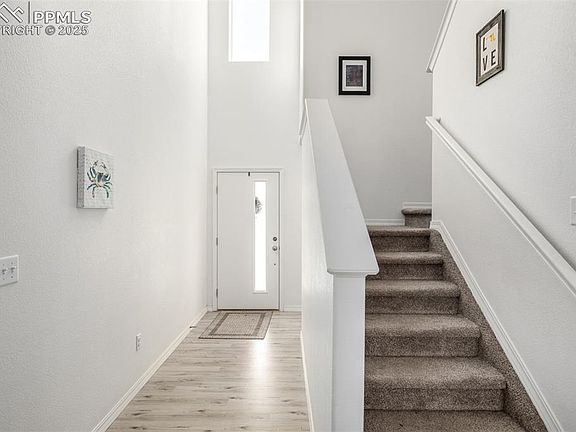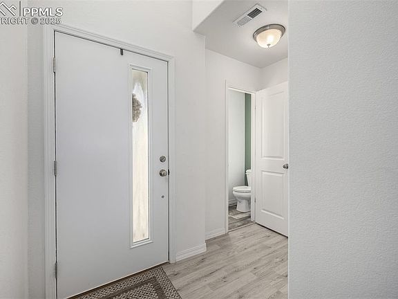 Check out this awesome home in Patriot Park! Step inside to a bright and open main level, where the kitchen, dining, and living areas flow together perfectly—ideal for everyday living and entertaining. The kitchen is ready for action with a spacious island, gas range, and large pantry. Plus, there’s a half bath on this level for added convenience. Upstairs, the primary suite is your personal retreat! It’s got plenty of space, plus a cozy nook that’s perfect for a reading corner or a mini office. You’ll love the en-suite bath and huge walk-in closet. Two more bedrooms, another full bath, and a laundry room complete the upper level. Out back, enjoy a private, low-maintenance yard with an extended patio—great for BBQs or just relaxing. There is even added a concrete walkway from the backyard to the front for easy access. Located in a prime spot near Peterson SFB, this home offers easy access to shopping, dining, parks, and major roads—making daily life a breeze. Don’t miss your chance to own one of the best (and largest) floor plans in the neighborhood. PLUS ... the walking trail that runs right alongside the property leads to running trails, open space and a park!