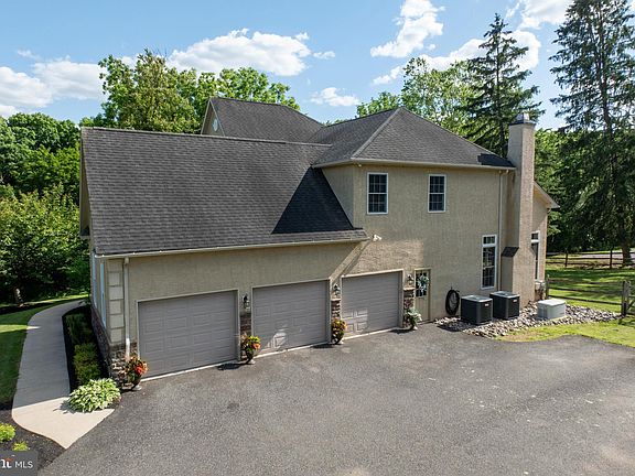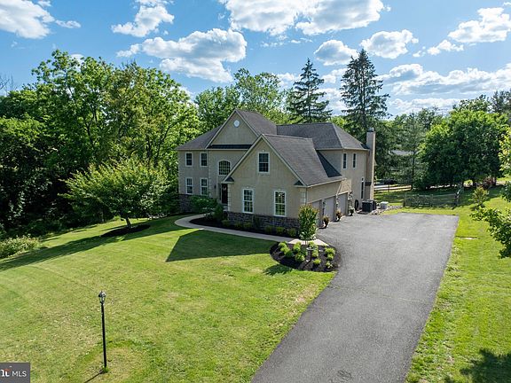 Welcome to your dream home! Nestled at the end of a private driveway shared by just four homes, this exquisite custom-built, two-story colonial residence offers 3,600 square feet of luxurious living space, plus a full finished walkout basement. Situated on a picturesque 1-acre lot with a charming creek running alongside it, this property in the highly desirable Perkiomen Valley School District is just 1 mile from the schools and offers an unbeatable combination of privacy, convenience, and natural beauty. This beautiful home features 4 spacious bedrooms and 4.5 beautifully appointed bathrooms. An oversized 3-car garage provides ample space for vehicles and storage. The bright, open floor plan boasts 9-foot ceilings on both the main level and the basement, enhancing the airy and expansive feel of the home. Custom details throughout, including extensive crown molding, wainscoting, 7" baseboards, upgraded door trim, Anderson windows and bullnose drywall corners. The gourmet kitchen is a chef's dream, featuring stainless steel appliances, a double oven, a gas range with exterior venting hood, an oversized center island with granite countertops, a tiled backsplash, pendant lighting, and pantry. French doors from the kitchen lead to a two-tiered deck, perfect for seamless indoor-outdoor living. The kitchen opens to the family room, which showcases a floor-to-ceiling stone fireplace, vaulted ceilings, and a back staircase leading to the second floor. The main level also includes a formal living room, dining area, an office with French doors, a convenient laundry room, and a powder room. The luxurious primary bedroom suite features a tray ceiling, four double-door closets, and a sitting room that can be used as an office, nursery, or potential walk-in closet. The lavish primary bath offers a jetted soaking tub, a walk-in shower with seamless glass doors, and beautiful tilework. Two secondary bedrooms share a Jack-and-Jill bathroom, while the fourth bedroom has its own full bath accessible from the hallway. The finished lower level adds an additional 1,000 square feet of living space, bathed in natural light from sliders and a full set of windows. Most of the area is open, with two additional rooms perfect for a second home office, gym, or hobby space. Sliders open to the side yard, where you can enjoy the soothing sounds of the creek and set up a fire pit under the stars. Conveniently located with easy access to Rt 422, Skippack Village, the Providence Town Center, Philadelphia Premium Outlets, and numerous restaurants, this home is ideal for those who enjoy both convenience and outdoor recreation. The Perkiomen Trail, perfect for biking, hiking, or walking your dogs, is just across the street. Recent upgrades include new HVAC and dishwasher in 2021, new carpets in the family room and office, and fresh paint in many rooms. This exceptional property offers a rare combination of elegance, comfort, and modern convenience in a serene setting. Don’t miss the opportunity to make this stunning custom-built colonial your new home. Schedule your private showing today and experience all that this remarkable property has to offer! Seller is a licensed Realtor. The listing agent is related to the seller. Check out the video tour link, here in the MLS.