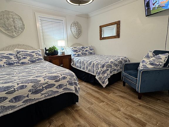 The first floor boasts a fully equipped, modern kitchen, making cooking a breeze. Our spa-inspired bathroom is stocked with upscale amenities to pamper you throughout your stay. There are two spacious bedrooms with Smart TVs, plush chairs, and thick, resort mattresses, all complemented by coastal-style bedding.