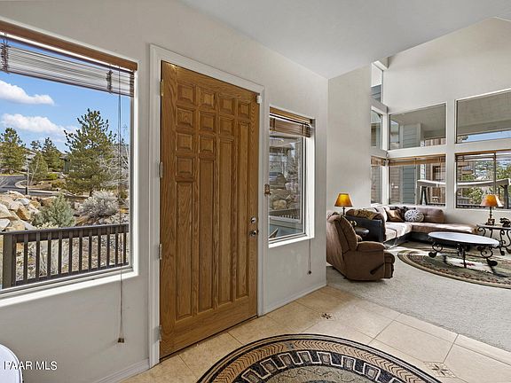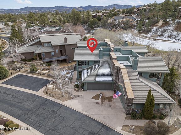 Single level living in the gated Hassayampa Community of Prescott, just minutes from downtown! Offering a blend of luxury, convenience, and serene golf course views. This elegantly designed home provides the comfort of single-level living with its main floor primary suite, kitchen, dining area, laundry, and and garage. Outdoor entertainment is effortless with a deck overlooking the lush course. Second floor has two en-suites, each have private patios, and a spacious loft for additional living or office space. The lower level is complete with a full bathroom and access to a covered patio. This property, sparingly used and well-maintained, is a haven of privacy and sophistication with furnishings available for purchase, ensuring a seamless transition into this prestigious Prescott community