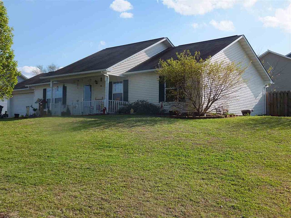 Neat as a pin home located in small subdivision. Minutes to Douglas Lake, I-40, the Smoky Mountains, Sevier County, and all the fishing, hiking, camping, and hunting, you could every want! Interior features a large living room, open kitchen/dining, all kitchen appliances, laminate flooring throughout, electric heat pump, and all the window blinds. There is an over sized single car garage with built in work bench and lots of shelving. The yard is pretty much level and is beautifully landscaped. The covered front porch is great because there are no homes across the road. I love the fenced back yard with large covered patio, beautiful grass, and plenty of room for friends and family. This is just a nice place for anyone looking for a home in Dandridge, TN!