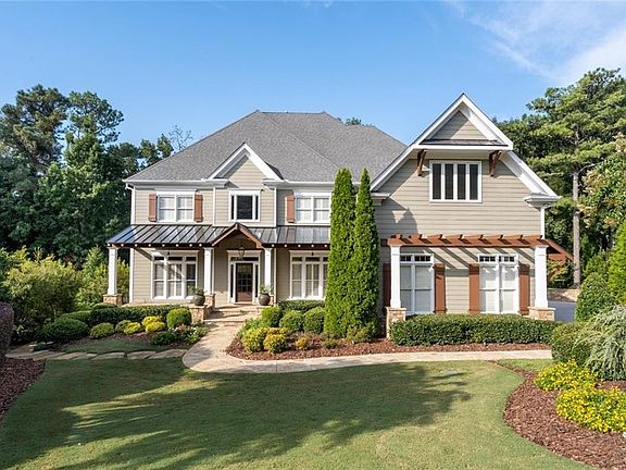 Welcome to 775 Lake Mist Cove — a one-of-a-kind 7,018 sq ft luxury estate on a peaceful 1.6-acre lot in Providence at Atlanta National, a premier gated and guarded Milton community. Built with timeless elegance and the highest standards, this stunning home offers privacy, tranquility, and refined finishes — just minutes from top-rated schools, equestrian centers, and all that Milton has to offer. From the moment you arrive, the attention to detail is clear. A stately stone walkway leads to a grand covered front porch. Inside, the main level features a dramatic two-story foyer and great room with soaring windows and a fireplace. From the kitchen and patios, you’ll enjoy serene views of your private backyard oasis — a daily invitation to relax and feel at home. The main floor also includes a separate dining room, private office, mudroom, guest suite with full bath, and a powder room — blending function with sophistication. Dual staircases, site-finished hardwoods, detailed millwork, and expert craftsmanship elevate every space. The expansive white kitchen features Sub-Zero and Thermador appliances, quartz countertops, marble backsplash, a sunlit breakfast nook, and a keeping room with a stone fireplace — perfect for casual gatherings. A cozy year-round sunroom includes a stone fireplace and windows that open to bring in the breeze. The home boasts seven fireplaces — a true mark of custom design and comfort-first living. Upstairs, the owner's suite is a retreat with a fireplace, sitting area, tray ceiling, built-ins, and two spacious walk-in closets. The fully renovated primary bathroom is magazine-worthy — with dual vanities, a barrel ceiling with chandelier, freestanding soaking tub, large tiled shower with multiple heads, and two linen closets. Three additional bedrooms complete the upper level — one with an en suite, two with a Jack-and-Jill layout. The walk-out, daylight terrace level is a full extension of the home, with high ceilings, recessed lighting, luxury carpet, and LVP flooring. It offers three flexible spaces for bonus bedrooms, a gym, home theater, or golf simulator. One soundproof room includes a green screen wall — ideal for video production, podcasting, or a creative studio. With a full bath and exterior access, this level offers potential for private living or studio space. There’s also a large open area, sunroom, and covered porches leading to a professionally designed backyard patio — ideal for multi-generational living, nanny/in-law quarters, or a private office. Outdoor living is unmatched, with five thoughtfully designed porches, two sunrooms, and extensive hardscaping. A grand stone fireplace with chimney and hearth anchors the private, wooded backyard — a showstopping space for entertaining or peaceful evenings. With acres of woods behind and zero road noise, the serenity is unmatched. Yet, you’re just minutes from GA-400, parks, trails, top schools, and the vibrant dining and entertainment scenes of Avalon, downtown Alpharetta, Milton, and Crabapple Market. This is a rare opportunity to own a luxury home that blends elegance, flexibility, and comfort — thoughtfully designed for how you live, grow, and thrive.