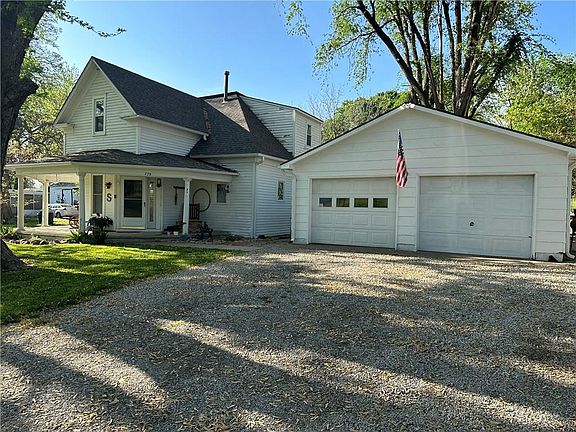 Check out this country home and small town living with a population of just over 100! Sit and have your coffee or afternoon tea on this beautiful wrap around porch. This home is located on a large corner lot-raise your own mini farm if you want to (Seller will even leave you the chicken coop-tons of square footage in the home featuring main floor laundry, 3+ bedrooms, newer roof and a large detached 2 car garage! This could be your paradise! The other animals and additional carport are not staying with the property. Easy to see!