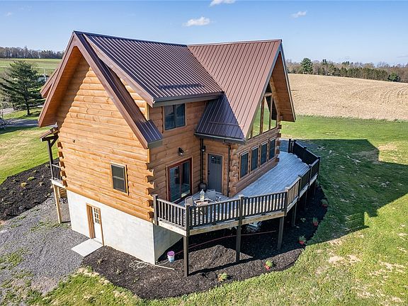 This brand new, never lived in luxury log cabin awaits you! And it is a true beauty! You will love the country setting this log home has to offer. Nestled on 2.6 acres in Brothersvalley Township, this 3 bedroom, 5 bathroom home (each bedroom has its own attached bathroom!) has amazing views of the mountains and rolling hills. You’ll feel secluded from the moment you pull up the driveway. The backyard is your very own private paradise for relaxing, summer bonfires, or the perfect place to raise animals of any kind.This property would make an incredible farmette as there is already a barn with electric and water, along with a fenced in pasture to get you started. A 36x48 detached garage is just another bonus. Home has electric heat pump and central air, along with well water (great quality) and sound mound septic. Views from your living room are absolutely incredible and the large windows show it off perfectly! Stop in to the OPEN HOUSE ON APRIL 30TH FROM 1:00-4:00 PM and fall in love!