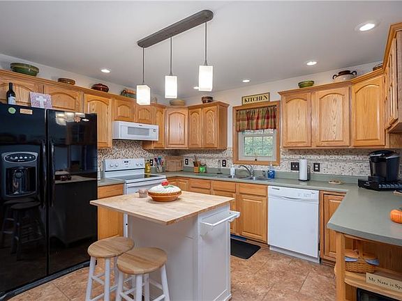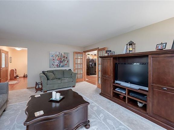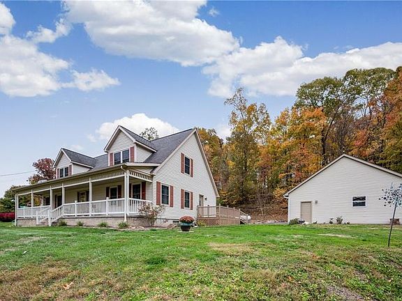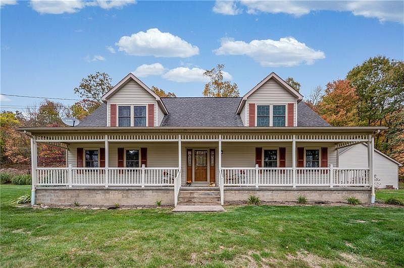 Must see this immaculate, updated home on 3 private acres! New oak hardwood flooring throughout. Large comfortable rooms with plenty of space. 1st floor Laundry. Kitchen has lots of cabinets and eatin area that looks out thru french doors to back deck. The Dining Room is lge enough for any size DR furniture. Spacious Living Room is off new front entry that also goes to new front entry that also goes to the Master Bedroom and Bath that is currently used as a den/family Room. Basement has Superior Walls 9 foot ceilings, walk out BilCo storm doors, and bathroom hookups ready to finish as you wish. Expansive front porch covers entire front of home. Two and 1/2 Car detached garage has room for equipment or 3rd car. Radiant flooring in garage just needs hooked up and heavy electric 200 amp .Two driveways give easy access and exit to property. Lots of annual flowers makes for a year-round display of flowers and landscaping. Close to shopping, I 79, &,Moraine St Park. 1Hr to Pittsburgh