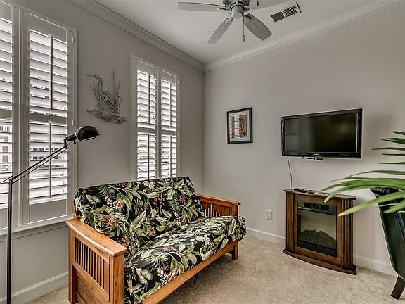 This home two bedroom, two bath, two half bath unit was bought new in 2010 and used only as a second home. There are ceiling fans in the living room, bedrooms and bonus room. HVAC is zoned and thermostats are wi-fi connected. Kitchen appliances convey. Refrigerator is new since construction. Unit is equipped with an elevator shaft for later installation. Bedroom and living room feature crown molding and Master features a custom lattice head board wall. Kitchen has stainless steel appliances; a work island and granite counter tops. There are window blinds throughout and plantation shutters in the bonus room. Entry is into a spacious foyer. Home is centrally located in Market Common and a golf cart ride to the beach. Its walking distance to restaurants and commercial areas. On the first floor is a bonus room that can be used as an office, den, study or extra bedroom.