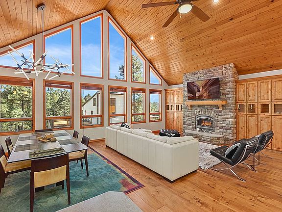 Wow! This is a rare Flagstaff home - an immaculate 4 bedroom, 3 bathroom cabin in the woods style home with soaring ceilings, a wall of windows with sky and treetop views, warm rustic finishes, city utilities, easy walking distance to downtown Flagstaff and Buffalo Park, & finally, backs green space & no HOA! Enjoy the open kitchen and great room with a rock fireplace, two bedrooms, full bath plus guest master suite on the lower level, and an open loft and gorgeous, spacious master suite on the upper level. Experience a luxury, immaculate cabin feel, stunning views and privacy, yet walk to the best of Flagstaff's downtown amenities and trails. Meticulously cared for by one owner, this home is move in ready, has Central AC, and is truly one of a kind. Explore our 3d home tour on Zillow