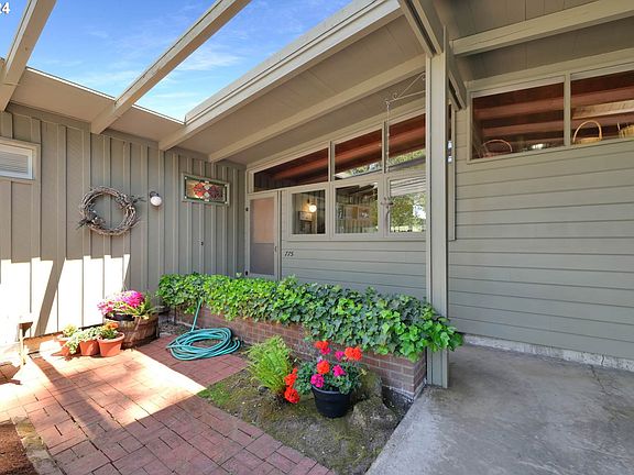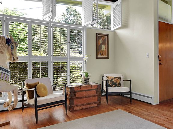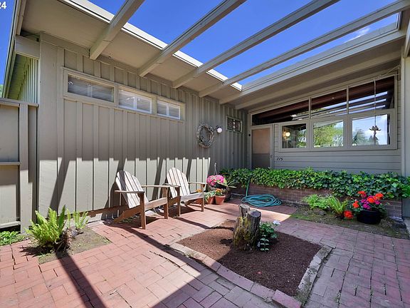 Seller to contribute $15,000 towards closing costs. This simply beautiful Mid Century Modern NW Contemporary designed in the Cliff Mays Style, has kept its charm throughout time. Everything about this home is carefully and intentionally done with an artist's eye. The original hardwood floors and open beam ceilings bring warmth, richness, texture, color and style not often seen. The floor-to-ceiling windows and open floor plan will delight. The garage conversion (done prior to 1967) is currently used as a family room with laundry and utility room. This space has potential for a second bath and generous 4th bedroom. Per the City of Eugene the lot is a candidate to be split with a panhandle or built on per the middle housing guidelines (buyer to due diligence) or build your dream shop/ADU. The outdoor space on this large .37 acre lot has a separate fenced garden area that has been treasured by many. This home will easily be kept cozy and warm efficiently as it includes a double-sided wood fireplace, both a gas wall furnace and radiant heaters powered by a traditional gas boiler updated in 2019. Additional updates include: roof 2020, sewer lines 2015, electrical panel 2015, kitchen windows Renewal by Anderson 2020, bathtub and surround 2023 and new slider in 2024. Neighbor schools that are highly sought after include Holt, Monroe, Sheldon and St Paul?s Don't miss this easy-to-see home.