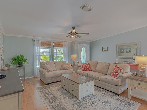 To say that this house is impressive, it would be a gross understatement! You are only steps away from the intra-coastal waterway and private community boat ramp that has an observation deck where you can watch the abundance of sea life and the spectacular shuttle/rocket launches from the Kennedy Space Center. This 2002 custom built home sits on a solid permanent foundation (that comes with a HUD compliant foundation engineering certification), heavy duty walls built with 2'' x 6'' studs, extra thick R-19 insulation, double pane windows, roof and AC only 2 years old, new kitchen appliances, new washer and dry, deep well for irrigation, 50 amp RV hook-up, and a carport with room to park up to 4 vehicle. It sits waterfront and comes with a free spot for boat or RV storage!