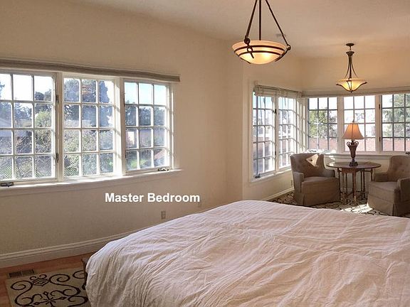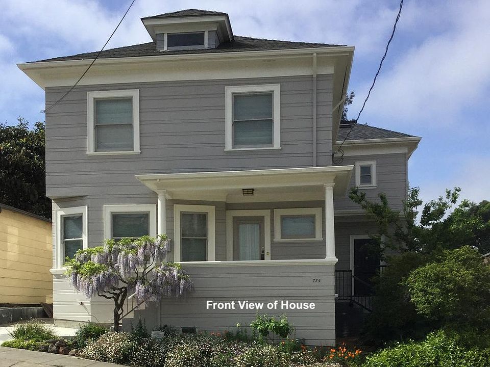 This is a furnished 4 bedroom / 3 bath single family home with a family room, an office and a bonus room in the Cleveland Heights neighborhood. It is one mile to lake Merritt, Lakeshore/Grand Lake shopping area/weekly Farmers' Market and Highway 580 access. It is 11 miles from San Francisco Financial District and 6 miles from UC Berkeley. This original Edwardian house has been recently updated and expanded. Renovated house features include - New and refinished original hardwood floors - Kitchen with slab granite countertops, porcelain floor, and stainless steel appliances - Tiled bathrooms - Built- in laundry closet - Fenced-in landscaped yard with a 150 sq ft stone patio, mature fruit trees and a gardening area. - Owner pays for trash and monthly gardening service. - Tenant pays for all other utilities