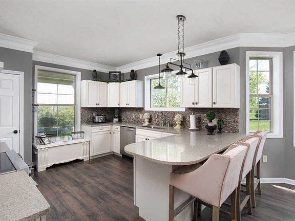 A little slice of Kentucky heaven! What an amazing view! 5 acres of green-space that includes a long driveway and a single stall barn with electric and water - bring your horse to live with you. This fabulous home is FARM HOUSE Chic! Renovated from top to bottom! Open concept is made for entertaining...living area, a kitchen bar area, breakfast nook, cozy family room and formal dining area! Updated flooring throughout make this house a joy to maintain and you will be proud to call this one home. Seven bedrooms and a first floor office allows for space for everyone, yet charming flow makes for a warm and inviting lifestyle. Finished out with a back patio and firepit for fall gatherings after the football game. This property is truly special, dead-end rural street allows for privacy and relaxation. Come take a look today - you will be impressed!