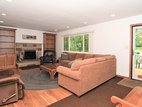 Very nice ranch located on a cul-de-sac street-featuring a formal living room wood burn fireplace, wood floors, the living room opens to a large kitchen with lots of cabinets, center island, desk surrounded by cabinets. The kitchen overlooks the great room with a wall of windows overlooking private treed back yard. A sliding door is located off the great room leading to a 12 x 22 trex deck and complete privacy. Large first floor master w/ double closet, master bath features a tub/shower. Three additional bedrooms and guest bath complete the first floor. The LL walks out to a private parklike setting. Also, featured in the LL are two additional bedrooms, full bath, office, workshop plus additional storage. Two car attached garage features steps going down the basement. This home features two laundry facilities. The first floor is plumbed for laundry, the laundry is presently located in the LL. This home features two furnaces and two AC units. Excluded are all free standing cabinets.