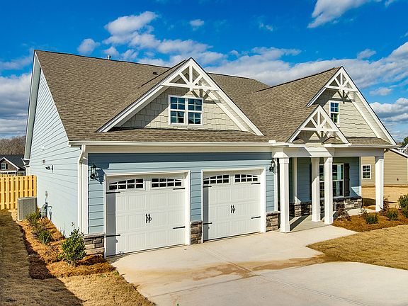 The Edgewood floorplan is a two bedroom, two bathroom home. The foyer has nice arches and you have space between the front entry and the great room. The kitchen is very open with a large island with a stainless steel farmhouse sink, Carolina Lazza quartz countertops, built-in wall oven/microwave combo, gas cooktop, walk-in pantry and high ceilings. The great room is spacious with vaulted ceilings and a gas log fireplace. The large covered rear porch is a great place to get some fresh air overlooking the fenced back yard. The primary bedroom has a boxed ceiling, walk-in closet, double vanities and a walk-in shower. The neighborhood and amenities make this home so special! Portrait Hill has a pool, clubhouse, covered cabana, amphitheater and sidewalks. Very convenient to I-26!