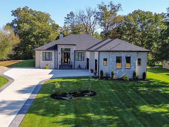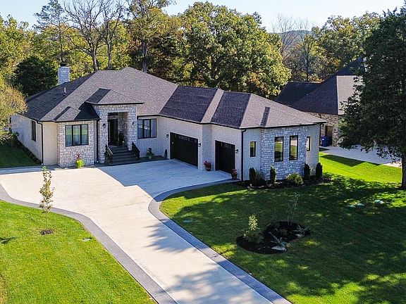 Located in the luxury community of Saddlebrooke, this custom, one-of a kind ICF home is perched high above Bull Creek and offers panoramic views of one of the clearest creeks in the area! As you enter the neighborhood, you will appreciate the gated security, beautiful meadow views, and the gorgeous landscape. With an ICF home, you will appreciate the benefits of energy efficiency and increased resistance to fires/disasters! As you enter, you will notice the tall ceilings, an open concept floor plan and impeccable views through numerous oversized windows! The kitchen features quartz countertops, a pot filler, custom cabinetry, built in appliances--including paneling over the refrigerator, every custom detail you could want! Lateral to the kitchen, there is a butler's pantry with additional cabinet storage space. The dining area faces a wall of windows capturing the gorgeous scenic views. Off the dining room, there is an extended patio/porch with covering--great for grilling, lounging, and entertaining. The master bedroom is spacious and the master bath has a soaking tub, a large walk-in shower, a gorgeous walk-in closet, and dual vanity sinks. There are two additional bedrooms that feature custom details throughout. There is also an office/den area, perfect for those that work from home! The backyard has mature trees and your own creek side views to enjoy that sun rise or sun set from your private 24x12 gazebo! The exterior is a stunning combination of brick and stone and the over-sized three car garage allows ample parking and storage space. Saddebrooke is located just off Highway 65, and in between Springfield and Branson. As a resident of the Village of Saddlebrooke, you are granted access to the community pool, creeks, parks, playground, tennis/pickleball court, and future walking trails. Just across the street from the home, is an easement trail, leading to the public swimming and picnic area. Call today for your showing!