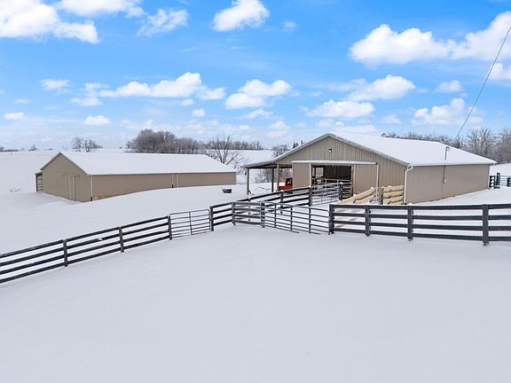 Welcome to your dream horse farm, a perfect blend of functionality and comfort! This stunning property features a well-designed 7350sq ft equestrian riding arena complete with electric and water supply. An attached shed (12'x98') with a durable concrete floor offers additional storage or workspace for your equestrian needs. A spacious horse barn measuring 75'x48', equipped with five stalls and a double stall. The barn includes a wash room, tack room, and tool room, all built on a solid concrete foundation with electric and water access. An impressive loft upstairs holds 240 square bales, ensuring ample storage for your feed.