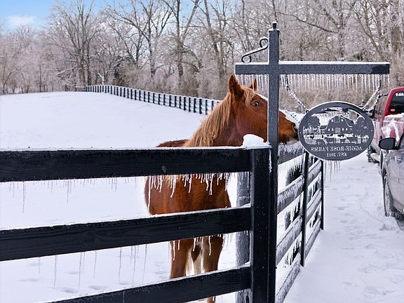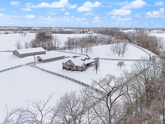 Step inside the beautiful 4 bedroom 3 bath home with a walkout basement. You'll find elegant columns, hardwood floors, a cozy gas fireplace, all beneath a vaulted ceiling. The kitchen is a chef's delight, featuring an island, stainless steel appliances, and ample dining space. The walkout basement provides additional living space a full bathroom, and a bedroom, making it perfect for guests or family gatherings. This equestrian haven is ready to welcome you and your horses.