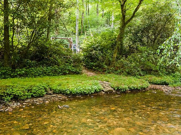 NANTAHALA RIVER FRONT! Blue Ribbon Trout Waters! This cozy and inviting 2 bedroom 2 bath Jim Barna Log cabin overlooks the headwaters of the Nantahala River. This cabin is located in the coveted Rainbow Springs community, a fisherman's paradise! This parcel owns to the center of the river & has deeded fishing rights to appx 2 miles of a private section of the Nantahala river (a trout unlimited top 100 stream). This home features a stacked rock wood-burning fireplace, hardwood floors, wood ceilings, granite countertops, 6-panel wood doors, and central Heat and Air. Enjoy soaking in the hot tub and then sit on one of the double 24 x 8 porches and watch the river roll by. Family Room and large storage area on the lower level. US Forest Service borders this property and surrounds the Rainbow Springs Community. Gated. This is truly a unique area in the Carolina mountains and the Eastern United States. USFS, wildlife, the real vision of the perfect log cabin on a pristine wild river. Also has access to Nantahala Lake. Most furnishings included.