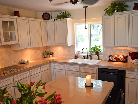 Honestly, you have to walk inside this immaculate secluded haven in order to appreciate all that is here. Everything has been completed redone from ceiling to floor. The moment you walk into the front entryway, you will be captivated by the peaceful sounds of the water fountain & the tropical foliage. This open floor plan is perfect for family gatherings and entertaining. With completely new kitchen, appliances, & baths, this home is ready to move into. As you walk out to the lanai, you will be inspired by the beautiful screened in vegetation and the peaceful solace that awaits your leisure. With almost a acre of privacy in the fenced back yard with citrus trees, provides plenty of features to enjoy. The 20X12 Workshop with electric & window AC is a caveman delight. The pre-dug hole (originally to be a fish pond) is wired for water & electric if new owner desires. Outdoor shower is for convenience. There is plenty of room on side of home for large boat or RV. Garage has a loft with stairs and a 10X10 office with electric and window AC. There are so many possibilities in this home; you have got to come see. The large 3rd bedroom has closet and full bath and can easily be used as an in-law suite with private exit from the garage to the back door. It is currently being used as an additional sitting area but french doors can easily be reinstalled. All renewals were completed between 2011 & 2012 consisting of new roof, high impact windows, AC systems with increased seer power, completely new baths & kitchen with brand new appliances, all new floorings throughout, new textured ceilings and new exterior paint. This home is ready to move into.