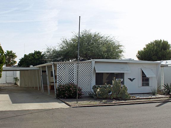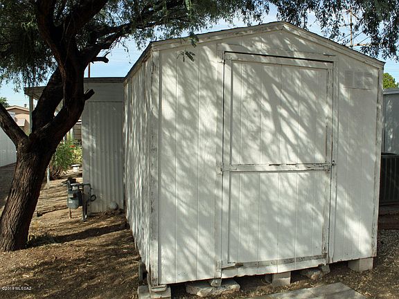 One of Tucson's best kept secretes. Where can you live in a mobile home park for only $155 a month & own a share in the park? Perfect for Retiree or Winter Visitor who wants to keep expenses low! 55+ Adult Community Park. Double Wide on a DOUBLE LOT. Fix-up special priced WAY below market to take into consideration updates! Covered parking & covered patio. Big laundry room. Two huge wood storage sheds. Central AC. This Co-op community has it all. Clubhouse w/ daily events, car-wash bay, laundry room, shuffleboards, outdoor pool w/ ramada, fire pit, horseshoe pit, heated indoor pool & Jacuzzi, library, exerciser room, pool tables, poker tables, commercial kitchen, RV parking. Pets are welcome w/ dog run located in the park. Close to shopping & Tucson Mall. Owner will carry! owner/agent