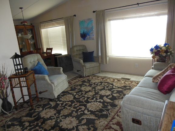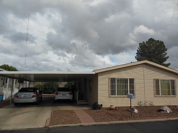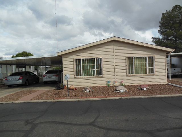 Beautiful manufactured home for 55+ offers low-cost luxury living with Co-op amenities, OBO. PAY NO SPACE RENT only Co-op fee. Own the home and the shares of 2 mobile home lots. Co-op fee of $155 per month includes real estate taxes on the 2 lots and amenities. Low-cost luxury living with Comanche Wells MHP community amenities such as heated pool, Jacuzzi, outdoor pool, billiards, exercise room, shuffleboard, walking, bike riding, friendly people and so many activities in the clubhouse; crafts, knitting, games, potlucks, special events, exercise group, Wifi, sewing, library, video library, puzzles, card games, table tennis, poker, bingo, big screen TV, movie night, computer, printer. Stay as busy as you like or just relax. Great all-year home or a winter home. Close to medical, dining, shopping. Beautiful sunset view of Tucson Mountains in distance from Dining Room/Living Room. Large back yard. Home includes Living room, Dining room and Family room. Lovely remolded kitchen with easy care vinyl flooring. Carpet in living room, dining, den and bedrooms. Bathrooms recently renovated. Master bath has garden tub with shower. Master bedroom has attached bathroom and spacious closet. Guest bedroom has access to full 2nd bathroom with tub and shower. Laundry room has storage closet, cabinets, desk area and door leading to outside. Exterior features: Newer aluminum siding, security bars on windows for added protection in quiet community. Double pane windows in most of home. Newer energy saver asphalt shingle roof (under warranty). Fully covered concrete driveway with room to park 4 cars in newly covered carport. Large back yard with 9'x'10 metal shed. Umbrella clothes line. Home is ground set for easy access. Appliances include Gas Pack HVAC, built in Microwave/Convection oven, Gas water heater, Gas Range, Refrigerator, Dishwasher, Garbage Disposal, Washer, Gas Dryer, Ceiling fan in family room. Very lovely home. Contact owner at 520.398-5278. Best cash offer gets the home!