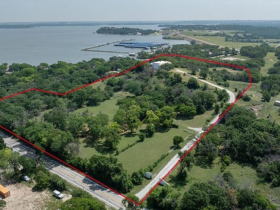 This land provides you the most amazing full views of Eagle Mountain Lake and is located just 2 minutes from Eagle Mountain Marina on Wells Burnett Road. Enjoy the beautiful daytime views of the lake and peaceful lake and harbor lights visible at night providing a fully relaxed lifestyle. Sitting on top of the hill is a large home built in 1975. The seller understands that the home needs a full remodel but the location of the home provides full views from the second floor large back deck off the large primary bedroom. Amazing views are also visible from the front and side yard as well as well as views of downtown Fort Worth on a clear day. The home does have 4 bedrooms all with ensuite bathrooms - 1 bedroom is located on the first floor. There are two beautiful stone fireplace walls, one in the great room and one in the primary bedroom. There is a well and a septic system and more wells could be be drilled with a minimum of two acres per well if the new owner wanted to build additional family homes. This land could also be used for a small development. Azle city water and sewer are close by but not on the property. There are so many opportunities for a new owner and animals are allowed. The same family has had ownership for nearly 50 years. A new survey done in April 2025 is available. 2025-05-29