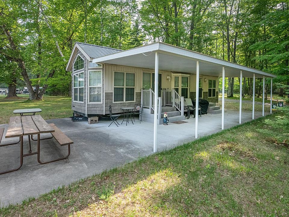 Do you DREAM of camping...well…maybe…glamping in your own private area? Look no further than this ideal property at Indian Shores Campground, which happens to be nestled on the shores of amazing Lake Tomahawk on the Minocqua chain of lakes! With this property not only do you own the spacious 2012 park model home, you also own the land it sits on. This 2 bedroom, 1 bath park model home is looking for a new family. It can sleep up to 12 people with a DOUBLE sleeping loft that has an entertainment center & storage on each side. The home sits on a newer fully covered slab, has heat & a newer AC, tons storage & a CENTRAL VAC. This lot is conveniently located within short walking distance to the boat slips, beach & all of the many amenities Indian Shores Campground has to offer. This includes; mini-golf, disk golf, badminton, shuffleboard, brand new playground equipment & a heated in ground pool to name just a few! Indulge in making new memories around the private, custom built fire-pit.