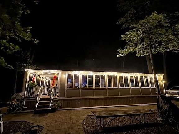 Nestled in the heart of the Northwoods with views of Lake Tomahawk, condo living at it's finest within Indian Shores! Boasting one of the largest park models with the largest addition on property, on a premiere lot, this home is move-in ready. There is 1 bedroom w/ plenty of built in closets/drawers/cabinets on the main with attached bathroom. Full kitchen w/ full sized appliances, 2nd bath & the addition is all living room. The living area has 12 windows with views of Lake Tomahawk. Stairwell up to the split loft area with 2 beds on each side, 1 side has open railing to below, both sides have built-in closets. Covered back deck has a view of the woods. Brick landscaping from front to back & concrete firepit area. Indian Shores offers a beach, boat launch, inground pool w/ snack shack, rec field with frisbee golf, mini golf, basketball, pickleball & playground. There is also a bath house within sight that has coin operated washers & dryers. The Lodge has a bar & gift shop.