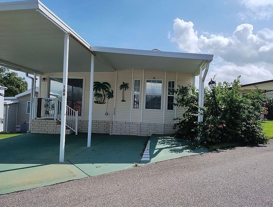 2000 Chariot Eagle “true” 2 bedroom home with one full and one half bath in the 55+ community of Baker Acres in Zephyrhills Florida. The living room is approximately 14 x 15 and the double recliner and new queen sofa sleeper stay. The dining room is 11x9 and the dining set is included. Bedroom one has a built in closet, 5 drawer dresser and nightstands. The queen bed stays. Bedroom two has a built in closet with drawers and the full bed stays. The full bath has a built in vanity and medicine cabinet and a linen cabinet. The walk in shower is 54x31 with porcelain tile walls and a white acrylic base and sliding glass shower doors. The half bath is off the second bedroom. All bedrooms and bathrooms have white raised panel pocket doors for privacy. Both bedrooms and the dining room have lighted ceiling fans. The 14x16 lanai is screened in and has a lighted ceiling fan. The laundry /storage area is 7x8 and the washer(1 year old) and dryer are included. The central air/heat is serviced yearly and was new in 2019. The asphalt roof was new in 2015. The triple carport covers the concrete drive. Lot rent is 614 and includes water, sewer, garbage, landscaping and all community amenities. The heated pool (84 degrees!) is open 24/7. Shuffleboard, bocce, horseshoes, game room, library, gym and large clubhouse are just some of the things that are available as well. Call 906-361-2859 or 906-360-4477 for information or to take a look!