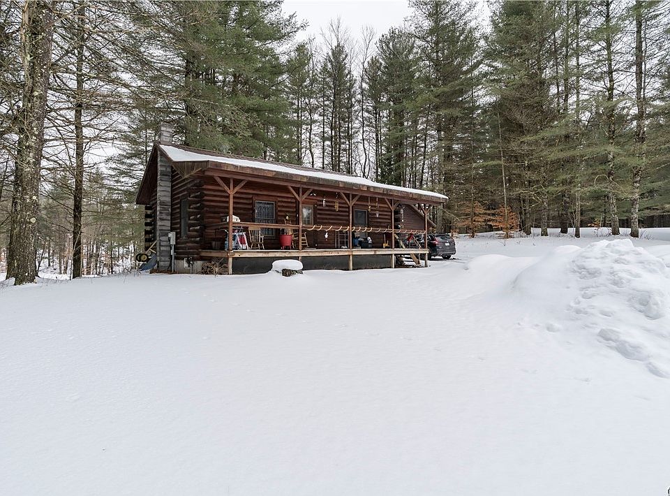Come check out this adorable 2 bedroom/1 bath log home in the country, sitting on over 41 wooded acres with a 2-car detached garage. Home features a covered front porch, an entry closet, open concept living area, two bedrooms and a handicap accessible bathroom. For more living space, there is a full basement with supplemental wood stove for heat. Located on ATV trails and just outside Adirondack Park but within a short drive of Beaver Lake.