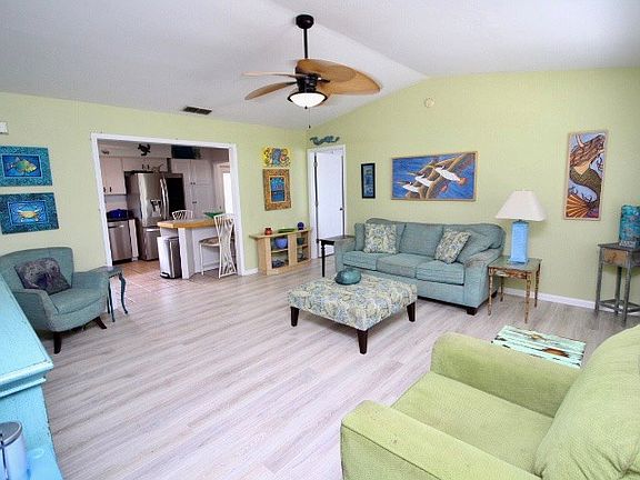 Yall! Welcome to Floridas very own hidden gem... Cedar Key. Where you can come and visit and get lost in paradise. This home is the perfect retreat home, forever home or even would make a GREAT airbnb. Minutes to town this extremely well maintained home is a 1997 3/2 and comes in at a comfortable 1232 HC sqft. With improvements as recent as 3-5 years ago you'll love the laminate flooring throughout as well as ceramic tile. Each bedroom offers plenty of space and very cozy bathrooms. Living room is nice and spacious and kitchen even more so. Loaded with cabinetry and a custom dining table. Nice laundry room off the back door perfect for coming in from outside and taking the day off. Exterior features near 1.5 acres MOL and is a picture of true Florida. Covered front porch, covered back porch perfect for evening sits or used as a carport. Nice circle drive and a nice utility building with power! This gem wont last long yall, come enjoy what the island has to offer.