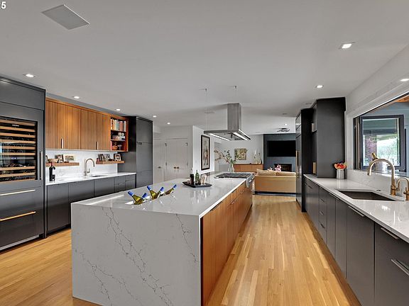 Perhaps the most stunning one-level home in the state - the "Montclair Mid Century" is a good life estate reimagined with the help of a noted Architect, design firm and Landscape Architects. Upon entering the custom 8' modern wood front door, you leave everything else behind. Quality, space, and function are the building blocks. The primary suite is a marvel of vaulted ceilings, custom walk-in closet with a place for everything and a spa bathroom with quartz counters, a curbless shower and a soaking tub. Indoor Outdoor living comes alive in the kitchen, which features a cool, modern vibe with Walnut & quartz countertops and an almost unbelievable 14 foot island, complete with a built in champagne/beverage trough. Open the custom 8 foot accordian-style kitchen window to serve slushies to your outdoor sunbathers. The dining room features an Oregon-Company made 14 foot pocket door system that tucks away and allows the entire corner to be open. With .73 acre, there is plenty of room for the resort sized swimming pool and spa surrounded by velvet concrete and the covered patio with exposed beams and custom metal columns, equipped with four large infrared heaters, creating nearly 600 more square feet in this outdoor room. Two outdoor gas fireplaces and a Bocce Ball court add even more fun to outdoor play. With 5 bedrooms and 4 full and 2 partial baths, plus a fully finished lower level, there is room for everyone and everything in this one-of-a-kind home.