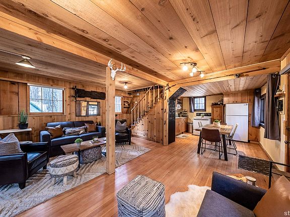 This beautiful Forest Service cabin is located on the American River in Strawberry, right across from Lovers Leap. There is a great deck on the riverside to relax on and see both the River and the Leap. Two fold out beds in the living room allow you to accommodate up to 7-9 people comfortably. With climbing, hiking, swim holes, biking, fishing, and much more right out your door, you will be well entertained outside. Or stay in for a relaxing day by the river in your new retreat. Comfortable country style kitchen. Heated with wood stove. French doors opening to riverside deck. Window in the main bedroom opens towards the river so you can listen to the river while you fall asleep. The square footage listed is just for the footprint of the house because of the way the forest service records information. The upstairs area is not accounted for.