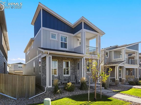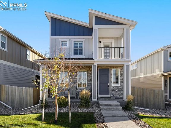 Welcome home to this like-new, gently cared-for, upgraded 2-story modern home featuring an open-concept design and a beautifully finished basement! Step through the front door and be greeted by 9-foot ceilings, abundant natural light, and luxurious LVP flooring throughout the main level. The pristine kitchen is a true showpiece with quartz countertops, an oversized island, gas range/oven, stainless steel appliances, and a convenient corner pantry—perfect for everyday living or entertaining. The adjoining dining and living spaces flow seamlessly, beautiful fireplace included, and an airy, comfortable layout that feels brand new. Upstairs, retreat to the primary suite featuring a balcony with sweeping views, a walk-in closet, quartz countertops and an adjoining bath with dual vanity and elegant finishes. Two additional bedrooms, a full bathroom, and a convenient laundry room complete the upper level. The finished basement expands your living space with a large family room, fourth bedroom, full bath, and a generous utility/storage area—ideal for guests, hobbies, or a media setup. Outside, enjoy a low-maintenance front yard and peaceful surroundings, with the home backing to Sand Creek and 13 acres of open space that provide added privacy, trails, park, a playground, and a dog park. Additional features include central air, radon system, Hunter fans, upgraded lighting, kitchen faucet, Sunburst shutters, frosted privacy glass, and a natural gas alarm. The 2-car garage offers convenience, with extra guest parking nearby. Located in the northern part of the city just off E. Woodmen Road, this home is close to Peterson SFB, the Air Force Academy, parks, hospitals, schools, shopping, and entertainment. This property combines luxury, location, and like-new quality—ready for you to move right in!