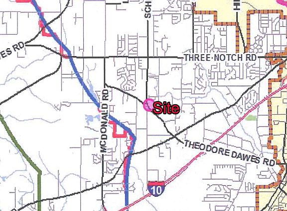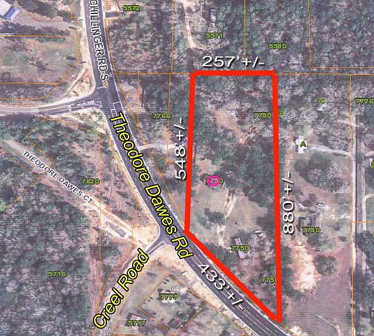 NICE 4.5 ACRE PARCEL WITH 443 FF ON THEODORE DAWES ROAD WITH MULTIPLE COMMERCIAL USES.