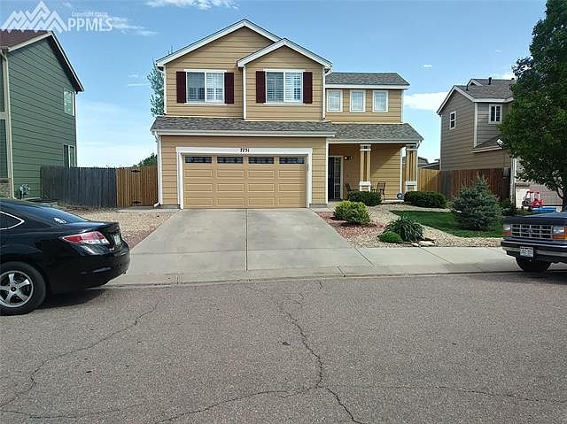 This spectacular Fountain home has several upgrades and is located a short distance from the Jordahl Elementary School and Fountain Ft. Carson High School. As you approach the home, you are welcome by mature landscaping and a covered front porch. Entering the home, you walk into the living room and open concept floorplan flowing into the dining and kitchen area. The kitchen features 42in cabinets and stainless appliances. The living and dining area is separated by a dual fireplace which is great for those winter months. From the dining area, you can walk-out to the extended concert patio which is covered, great for entertaining. The backyard is fully fences and is great for cooking out with family and friends. Also, on the main level, there is a half bath for your convenience. Upstairs offer 3 bedrooms and 2 full bath. The Master Bedroom offers a attached bath with double vanity and a walk-in closet. The home offers several great features, high vaulted ceiling in the living room, hardwood floors throughout the main and upper level, along with custom window coverings which is a excellent added feature to keep the sun out on those hot summer days. But no worries, the home is equip with Central A/C, to keep you cool on those heated days! Only a short distance from the Mesa Ridge Shopping Center which offers restaurants and shoppings. This home is within driving distance to Ft. Carson!! This property is a must see! Welcome Home! Seller is providing a 14 month Home Warranty.