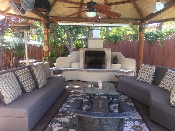Highly upgraded Spanish-style home with a modern flare offering an inspiring resort style tropical backyard including multiple entertainment areas with fireplaces, custom Palapa, newly finished saltwater Pebble Tec pool, built-in BBQ island and recently built kids playhouse overlooking the turfed play area. Inside showcases a remodeled kitchen to present an open floor plan & chic modern style appointments. The perfect home for those who want to move in and entertain family and friends. Owned solar.