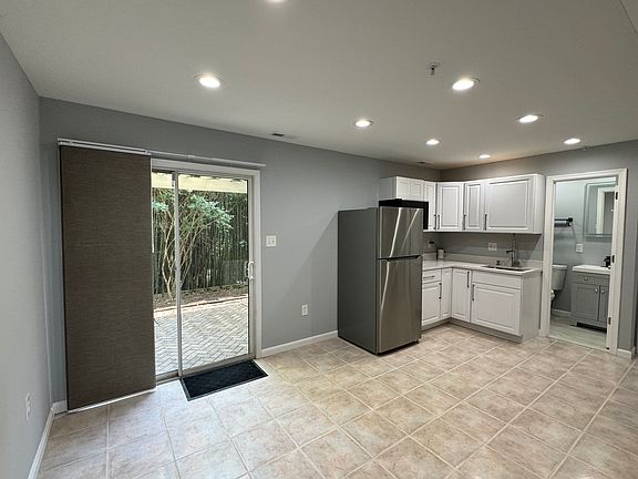 Cozy and bright bedroom with hardwood flooring, featuring spacious closet and corner nook with a small desk ideal for a home or office or extra storage.Brand new bathroom with a frameless shower and marble-style tiles. A sleek vanity, black fixtures, and recessed lighting complete this stylish retreat. The full kitchen boasts stainless steel appliances, an induction cooktop, ample white cabinets, and granite countertops. With neutral tile flooring and bright recessed lighting, it's a modern inviting space. A private entryway with sliding glass doors leads to a peaceful garden-like setting. The pergola adds charm, blending privacy and tranquility. All utilities are included, free convenient parking is available, making this the perfect space to call home! Standard Residential Lease. Application Fee. Non Smoking