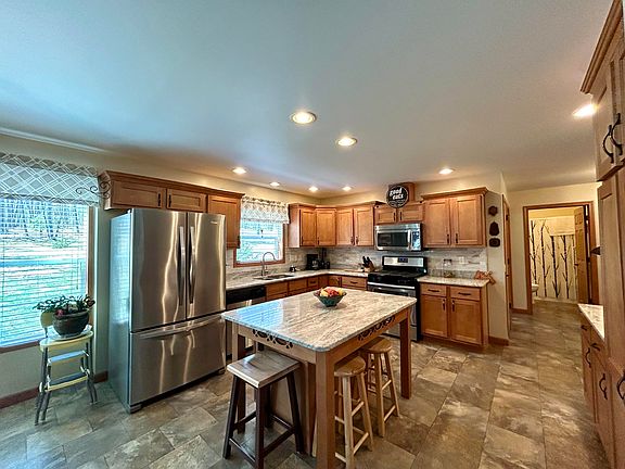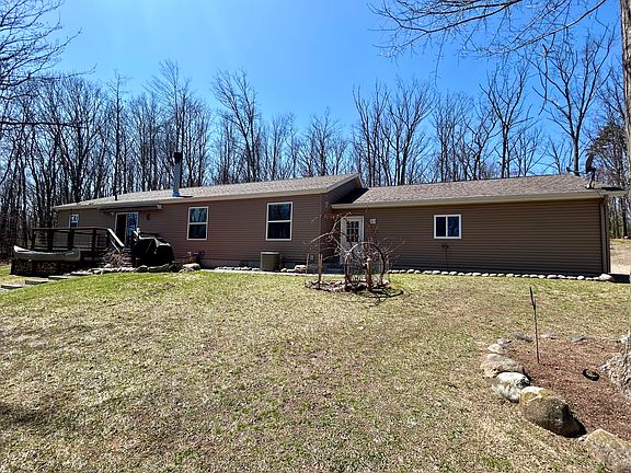Privacy and seclusion await at this true Up North retreat! This 3-bedroom, 2-bath ranch is nestled on over 10 wooded acres and backs up to more than 15,000 acres of state land, offering endless outdoor adventure. The property features scenic trails winding through mature hardwoods. Features an updated kitchen with stainless steel appliances and granite countertops, and a cozy living room with a stone fireplace and serene backyard views. The home also includes an attached, insulated 30x24 garage, a 12x20 storage shed, a 16x10 wood shed, and a fully fenced 24x16 garden area. Perfect for growing your own vegetables. Located just a few miles from the prestigious Forest Dunes Golf Course and close to the Mason Tract for unbridled trout fishing. Peace, privacy, and nature all in one package!