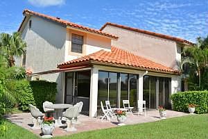 Call Laurie 561-756-5919 for a private showing. Expansive lake and golf course views from this spacious corner townhome with a 2 car air conditioned garage. Eat in kitchen and separate dining room. All bedrooms upstairs. Gray marble flooring throughout downstairs. Impact Glass enclosed patio provides additional entertainment space! It has daytime privacy coating and sun filtering shades. A/C 2019-Vortex Plasma Solution installed inside the A/C ( to kill bacteria and viruses). All toilets are Toto w/ soft close lids. Long driveway allows 4 cars to be parked outside. Central Vac. This property provides lots of flex splace! Boca Pointe CC is an optional membership community. Best Boca schools. Close to shopping & restaurants. Don't miss this opportunity to purchase a rarely available townhome in La Mirada!