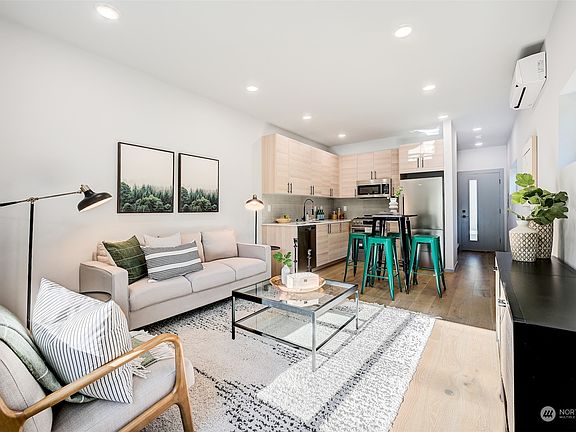 Last unit left on this newly constructed property in Loyal Heights neighborhood. Great floorpan with two generous size bedrooms and two full baths. Oak Hardwoods on main level. Quartz counters in kitchen and all stainless steel appliances. Fully fenced outdoor space. A/C from the mini split and wall heat for the cooler months. Off street parking spot near rear entrance to the unit pre wired for EV. Green construction materials used for the build.