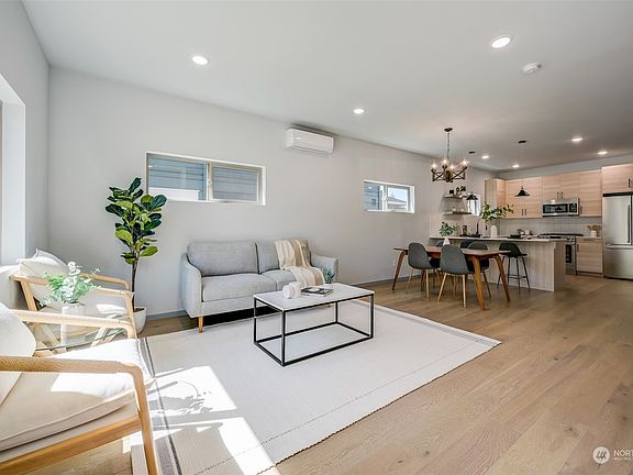 Just completed new construction in perfect Loyal Heights location. Light and bright home with great floor plan and large primary suite on top floor with deck. Enjoy off street parking. Oak Hardwoods throughout the main floor. Quartz counters in kitchen with all stainless steel appliances. A/C mini-splits and tankless water heater. Powder room on main floor and fully tiled walk in showers in both primary and guest bathrooms. Large primary suite with two seperate walk-in closets with nice size deck of the bedroom. Fully fenced front yard. Green construction materials used for build. Off street parking wired for EV. Seller is offering $10,000 credit towards buyers closing costs for offers accepted before Tuesday 9/3/23.